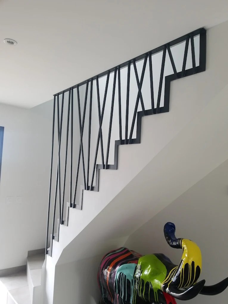 Découvrez quelques exemples de nos réalisations dans la section Galerie : garde-corps à barreaudage noir, structures métalliques modernes avec insertions de verre, modèles d’inspiration industrielle ou plus classique.